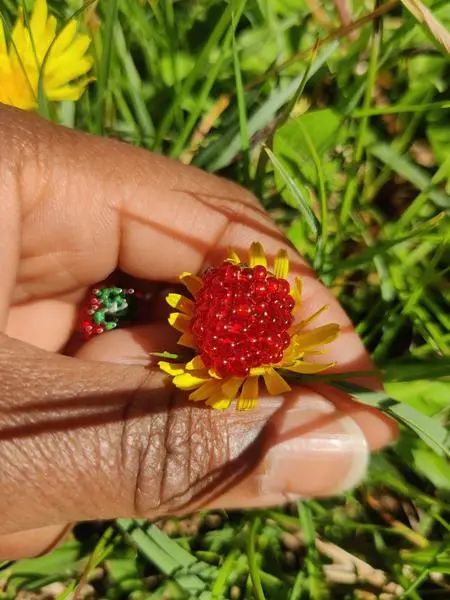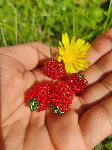 Venez réaliser un collier délicat composé d’une chaîne dorée à l'or fin (optionnel) et d’un pendentif « framboise » fabriqué à partir de petites perles.